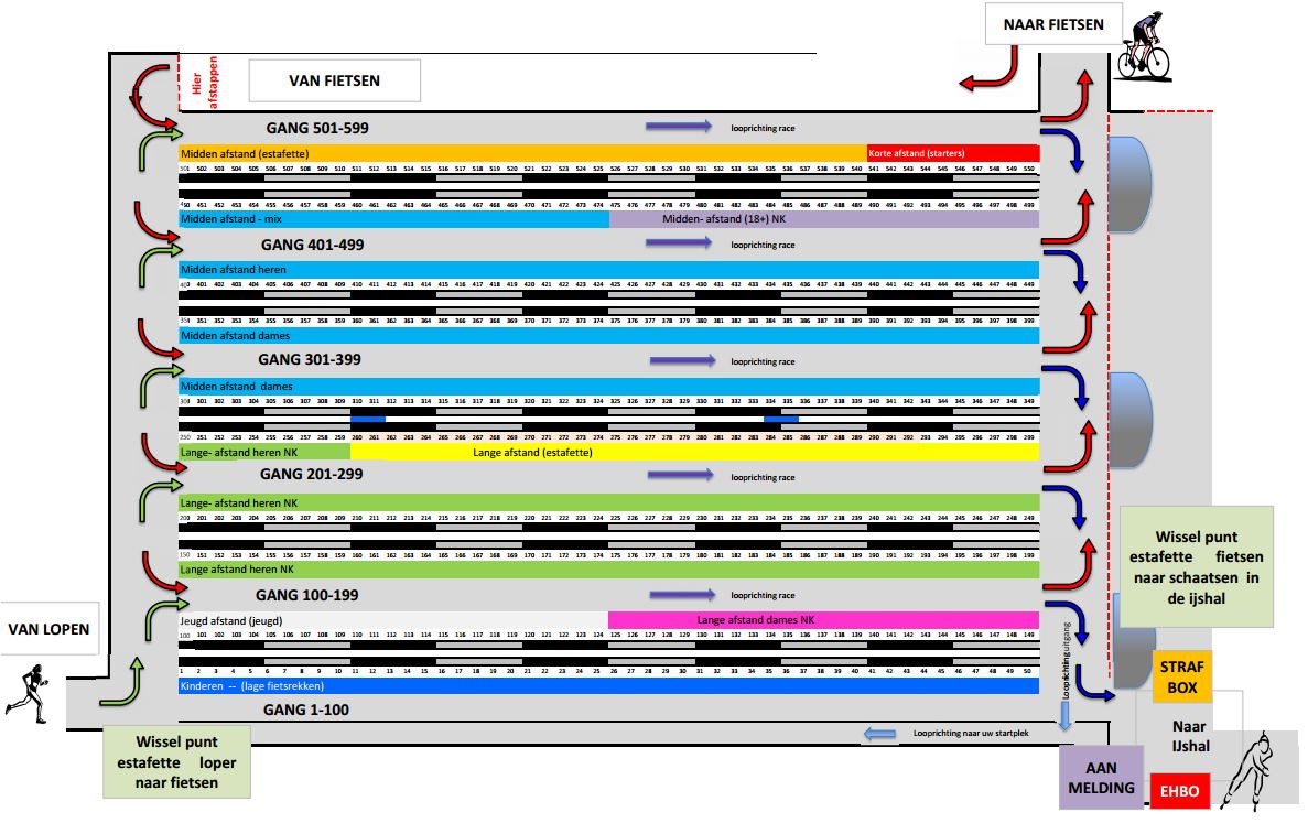 Let op! het wisselvak van fietser naar schaatser is in de schaatshal.