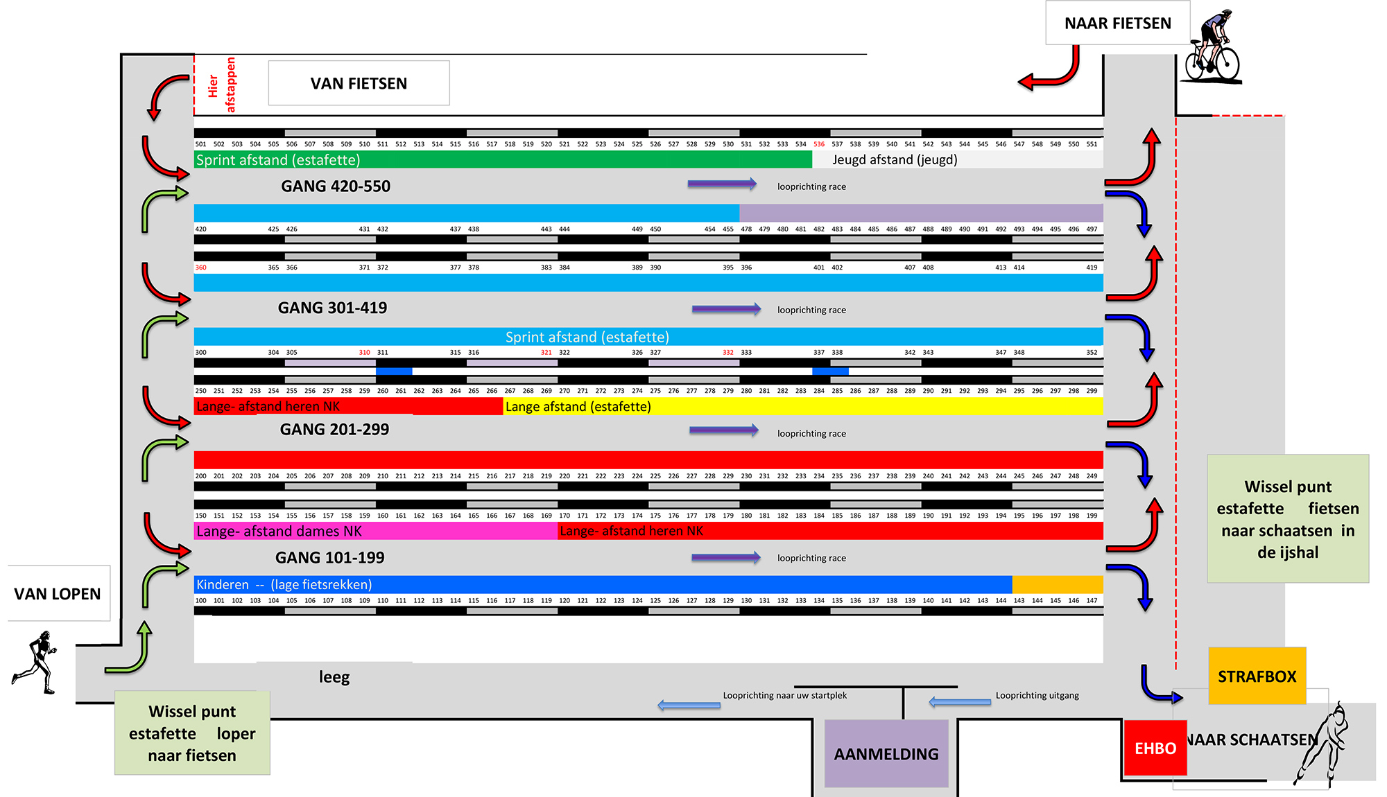 Let op! het wisselvak van fietser naar schaatser is in de schaatshal.